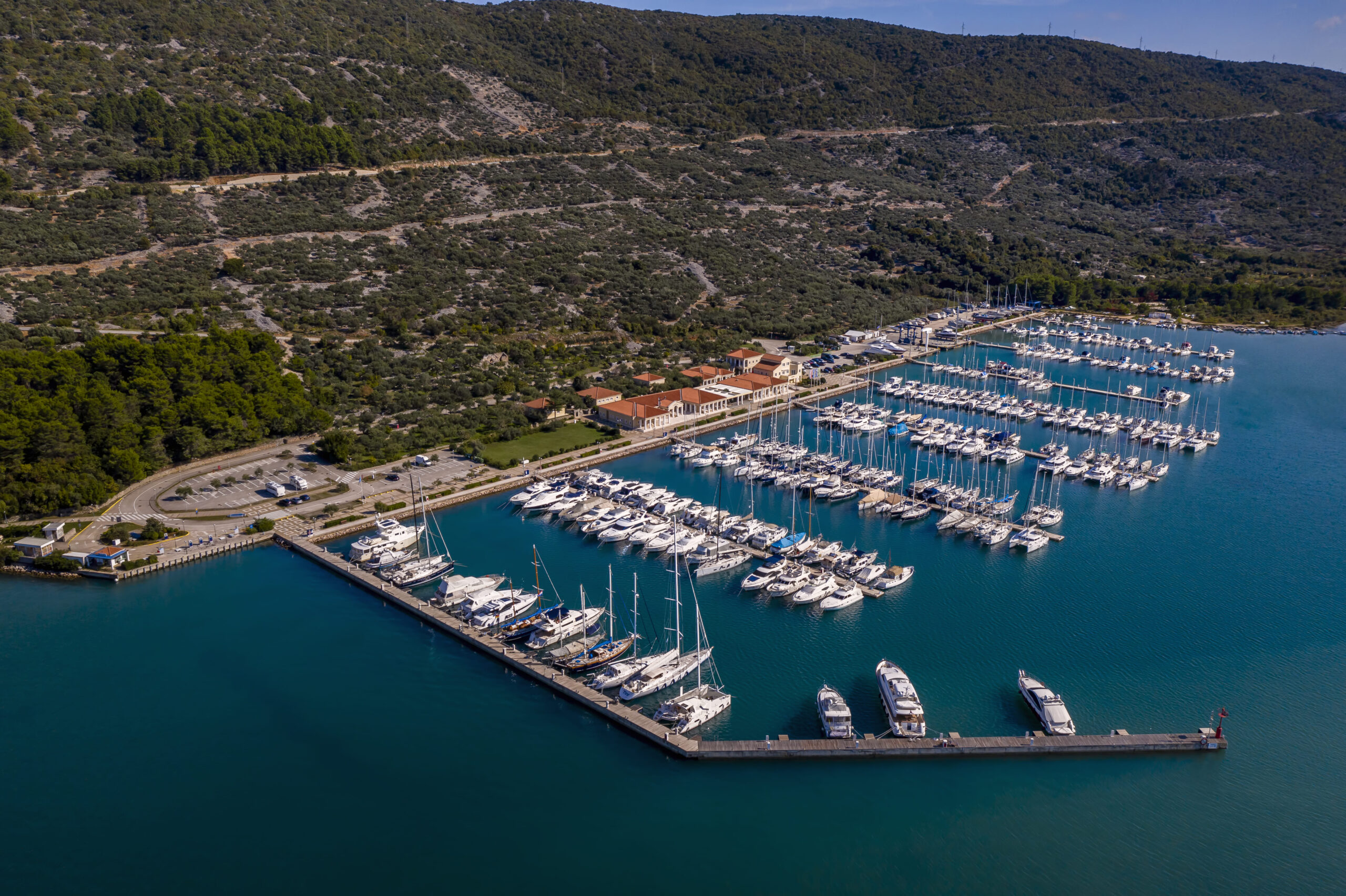 Situated on the enchanting island of Cres, our marina is a mere stroll from the city center, offering unparalleled convenience and charm. Accessible by both land and sea, its prime location in the northern Adriatic has made it a favored destination for sailors for generations. Guided by the lighthouses of Cape Kovačine and Križica, our marina welcomes guests through a picturesque 400-meter-wide channel.